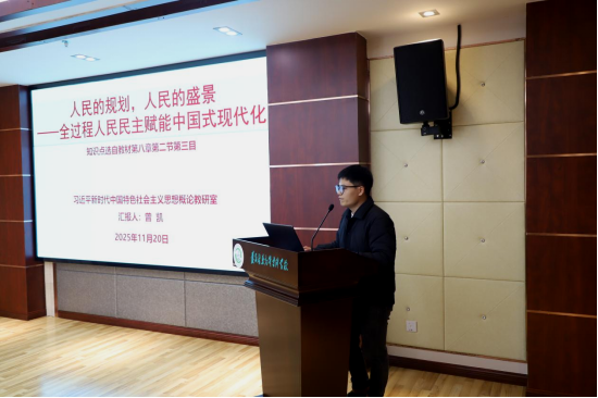 本次备课会以“教学展示+交流研讨+专家点评+领导总结”的形式开展。教学展示环节,习近平新时代中国特色社会主义思想概论教研室主任曾凯、毛泽东思想和中国特色社会主义理论体系概论教研室教师王贵、思想道德与法治教研室主任卢珊、形势与政策教研室主任刘馨懋先后进行备课展示,四位教师立足于教材本身,基于对党的二十届四中全会精神的扎实掌握和富有创新性的教学理念,通过讲述对于教学目标、情景设计、背景梳理、案例选择、价值引导、理论升华等步骤的相关设计,构建了一个闭环式的教学过程,较好地实现了将党的二十届四中全会精神与思政课教学内容的有机融合,为全体思政教师提供了可借鉴的教学思路和可推广的教学案例。